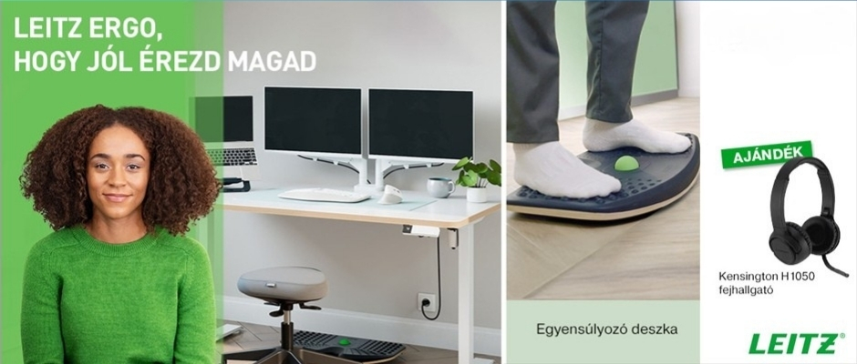 Maradjon aktív és érezze jól magát a LEITZ „Ergo” kiegészítőkkel! Fedezze fel a mozgásra ösztönző megoldásokat, köztük a kiemelt LEITZ „Ergo” egyensúlyozó deszkát és válassza ki ajándékát!