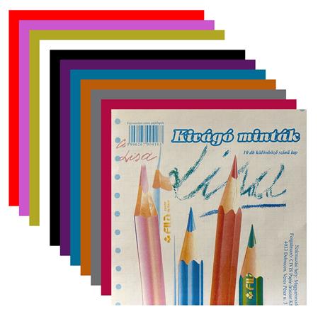 A kivágóminta csomag különböző színes lapokat tartalmaz
